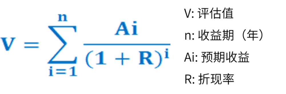 收益法是指通过将评估对象的预期收益资本化或者折现,来确定其价值的各种评估方法的总称。其计算公式如下:
